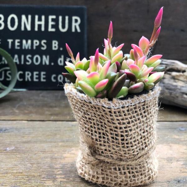 ご覧頂きありがとうございます。 新入荷の桜吹雪です。 可愛いピンクの桜吹雪です。 桜色に色づいたとても可愛い多肉植物です。 麻布アレンジで2.5号ポットに入っています。 ☆水やり、管理方法 葉っぱが肉厚な多肉植物で、ここに水分を溜めこむので、水をやりすぎると腐ってきます。 春から秋までは土の状態を見て濡れているようならば水をやらないようにし、乾燥気味に管理します。 ☆置き場所 直射日光を避けた風通しのよい場所 ☆発送は第四種郵便 ※第四種類郵便は事故保証、配達日時のご指定などがございませんのでご了承ください。 ☆送料は梱包代や梱包資材の金額も含まれますのでご了承ください。